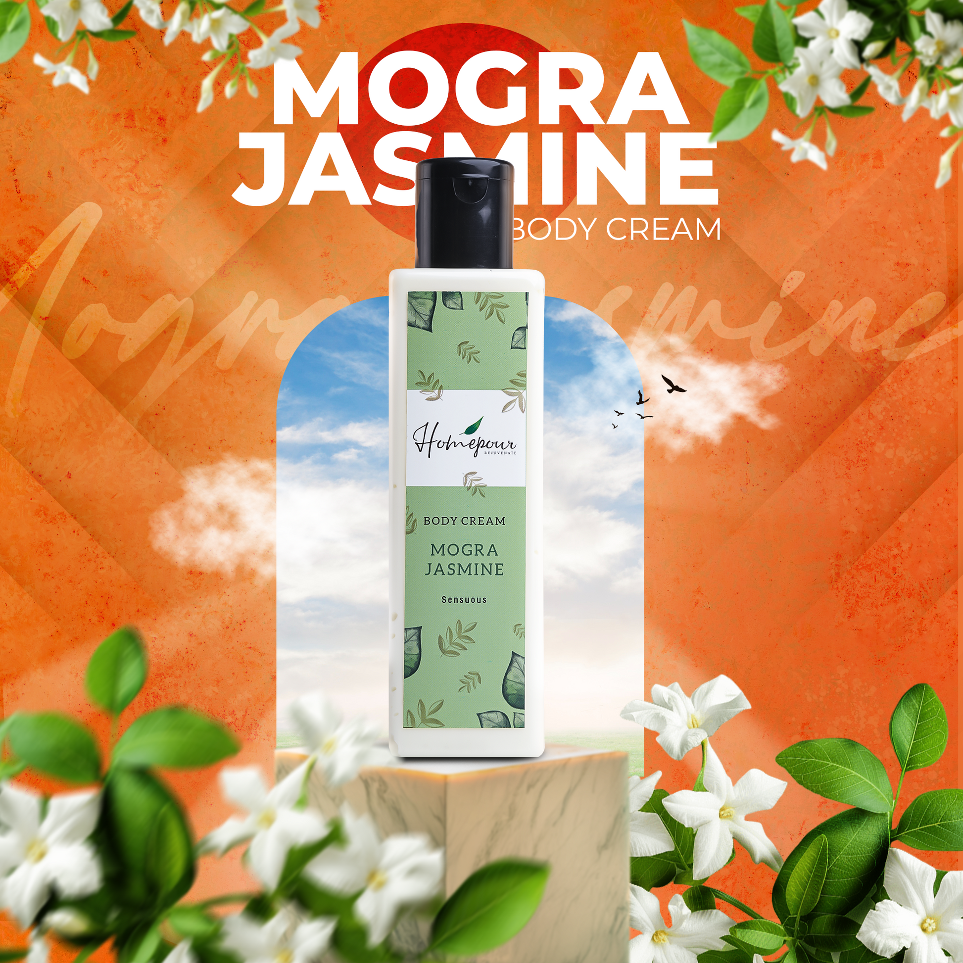 Step into a moment of pure tranquility with the Homepour Mogra Jasmine Body Cream. For centuries, the delicate, intoxicating scent of Mogra (Arabian Jasmine) has been synonymous with elegance, purity, and serenity in India. We have captured the soul of this revered flower in a rich, creamy formula that deeply nourishes your skin while uplifting your spirit. Let each application be a ritual of self-care that leaves you feeling calm, confident, and beautifully fragrant.